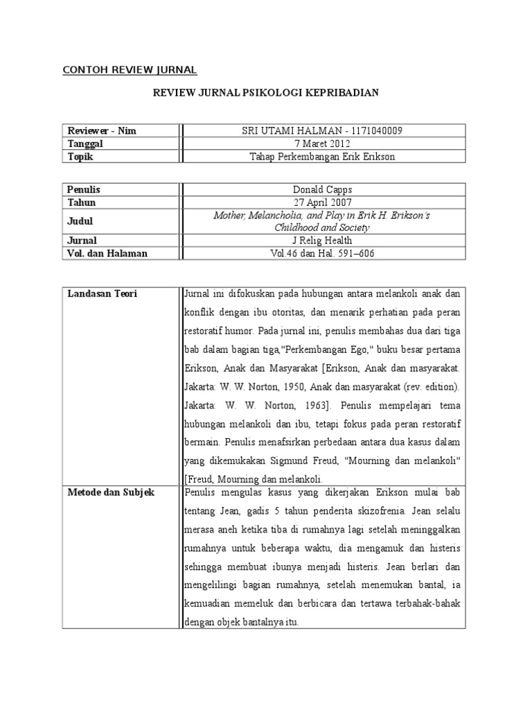 Contoh review jurnal internasional psikologi. Itulah beberapa contoh review jurnal untuk berbagai jenis penelitian. Review jurnal mata kuliah : Saat ini, mulai disadari bahwa ayah juga memiliki peran yang penting dalam pengasuhan anak. Contoh review jurnal review jurnal psikologi ia.