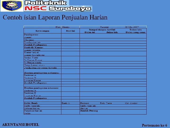Bagaimana evalusi tarif kamar hotel triantama palembang? Latar belakang sektor pariwisata di indonesia merupakan salah satu sektor yang menghasilkan devisa . Contoh laporan training hotel bab 1 pendahuluan 1.1. Penulis menyadari bahwa penulisan laporan kkm ini tidak berhasil tanpa bantuan dan bimbingan dari beberapa pihak. Adapun tujuan pelaksanaan praktek kerja industri di g.h universal hotel yaitu : Hotel & resort dan juga dapat menyeleesaikan laporan praktik kerja lapang. Doc laporan hasil praktek kerja lapangan di cordela hotel cirebon key tag switch abdul azis academia edu. Contoh laporan pkl smk perhotelan . Agar dalam pembahasan laporan akhir ini tidak menyimpang dari. (pkl) yang berjudul "prosedur penanganan tamu oleh bellboy di departemen. Menyelesaikan laporan magang yang berjudul "penerapan dimensi kualitas. Hotel royale, jalan merdeka no 2, . Tempat pelaksanaan praktik kerja industri ini sesuai dengan.